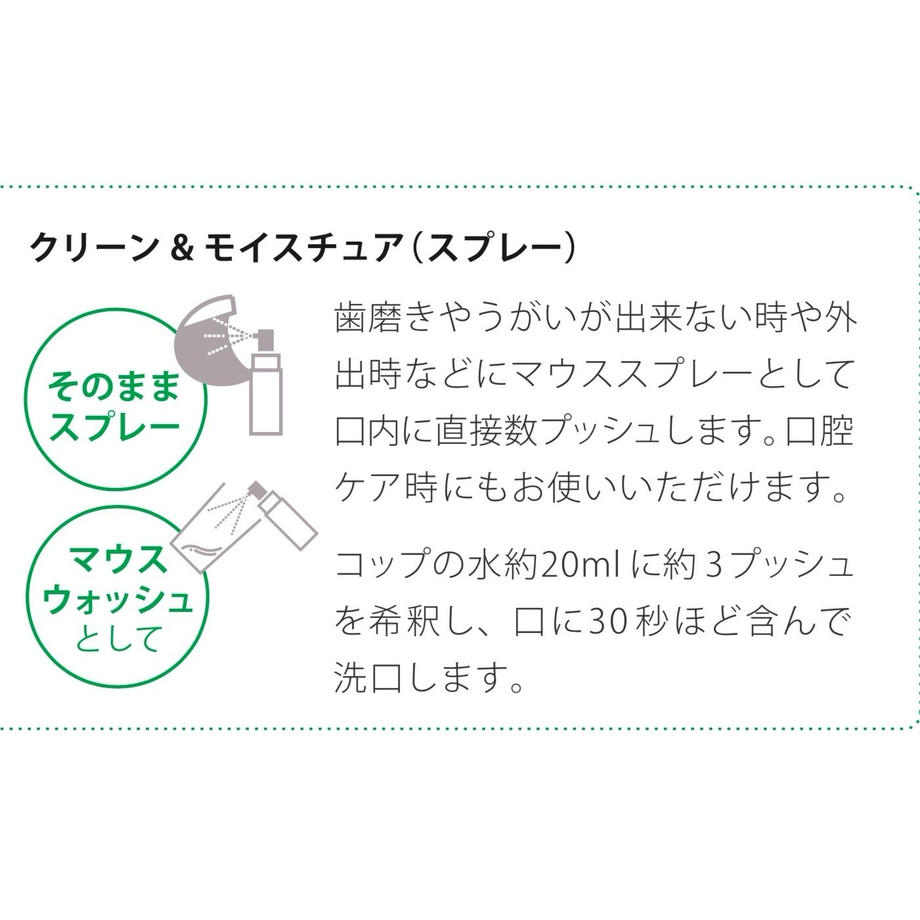 お口が乾いた時や口臭が気になる時などにマウススプレーとして